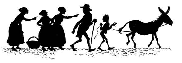 There was once a man who had an Ass and a Lap-dog. The Ass was housed in the stable with plenty of oats and hay to eat and was as well off as an ass could be. The little Dog was made a great pet of by his master, who fondled him and often let him lie in his lap; and if he went out to dinner, he would bring back a tit-bit or two to give him when he ran to meet him on his return. The Ass had, it is true, a good deal of work to do, carting or grinding the corn, or carrying the burdens of the farm: and ere long he became very jealous, contrasting his own life of labour with the ease and idleness of the Lap-dog. At last one day he broke his halter, and frisking into the house just as his master sat down to dinner, he pranced and capered about, mimicking the frolics of the little favourite, upsetting the table and smashing the crockery with his clumsy efforts. Not content with that, he even tried to jump on his master's lap, as he had so often seen the dog allowed to do. At that the servants, seeing the danger their master was in, belaboured the silly Ass with sticks and cudgels, and drove him back to his stable half dead with his beating. "Alas!" he cried, "all this I have brought on myself. Why could I not be satisfied with my natural and honourable position, without wishing to imitate the ridiculous antics of that useless little Lap-dog?"
