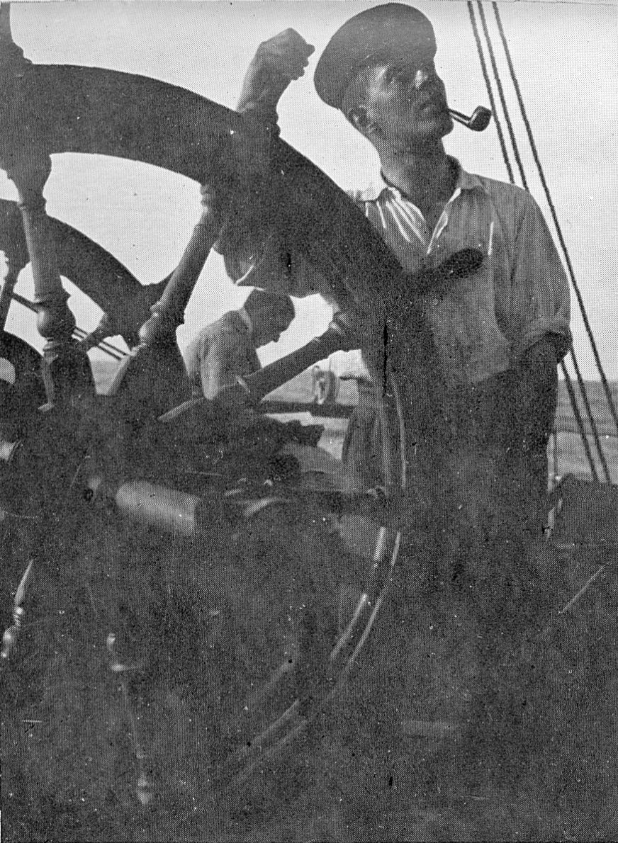 When morning broke we could see the land in the distance—greenness, trees, every now and then a cottage. We began to feel impatient. We unpacked the shore-going clothes with their creases three years old which had been sent out from home, tried them on—and they felt unpleasantly tight. We put on our boots, and they were positively agony. We shaved off our beards! There was a hiatus. There was nothing to do but sail up and down the coast and, if possible, avoid coastwise craft.