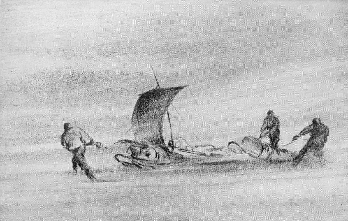 | Sledging in a high wind: the floor-cloth of the tent is the sail. | 530 | |