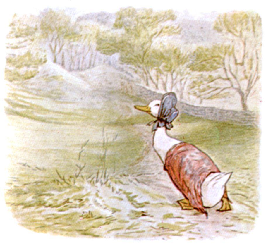 Jemima Puddle-duck was not much in the habit of flying. She ran downhill a few yards flapping her shawl, and then she jumped off into the air.