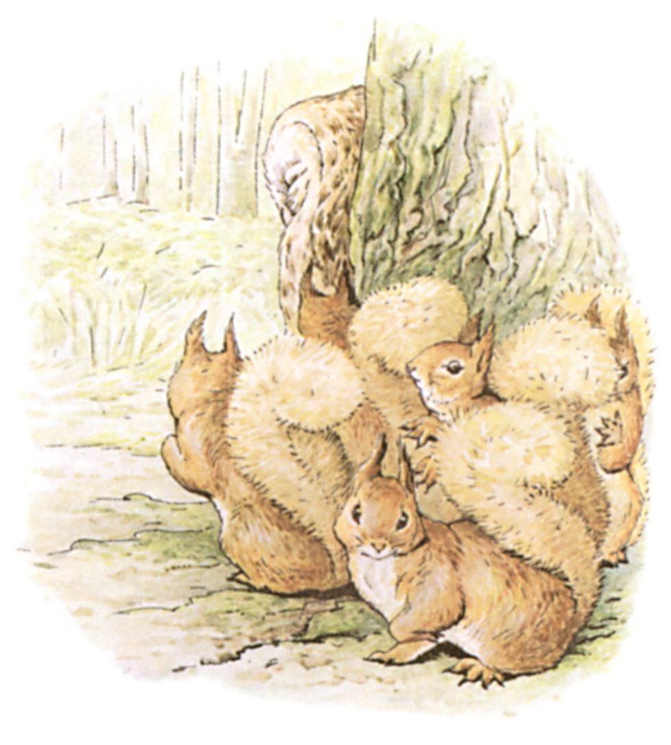 This is a Tale about a tail—a tail that belonged to a little red squirrel, and his name was Nutkin.