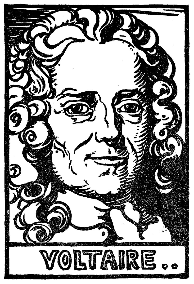 One of Max Beerbohm's cartoons shows us the young Twentieth Century going at top speed, and watched by two of his predecessors. Underneath is this legend: "The Grave Misgivings of the Nineteenth Century, and the Wicked Amusement of the Eighteenth, in Watching the Progress (or whatever it is) of the Twentieth." This Eighteenth Century snuff-taking and malicious, is like Voltaire, who nevertheless must know, if he happens to think of it, that not yet in the Twentieth Century, not for all its speed mania, has any one come near to equalling the speed of a prose tale by Voltaire. "Candide" is a full book. It is filled with mockery, with inventiveness, with things as concrete as things to eat and coins, it has time for the neatest intellectual clickings, it is never hurried, and it moves with the most amazing rapidity. It has the rapidity of high spirits playing a game. The dry high spirits of this destroyer of optimism make most optimists look damp and depressed.[Pg xi] Contemplation of the stupidity which deems happiness possible almost made Voltaire happy. His attack on optimism is one of the gayest books in the world. Gaiety has been scattered everywhere up and down its pages by Voltaire's lavish hand, by his thin fingers.
