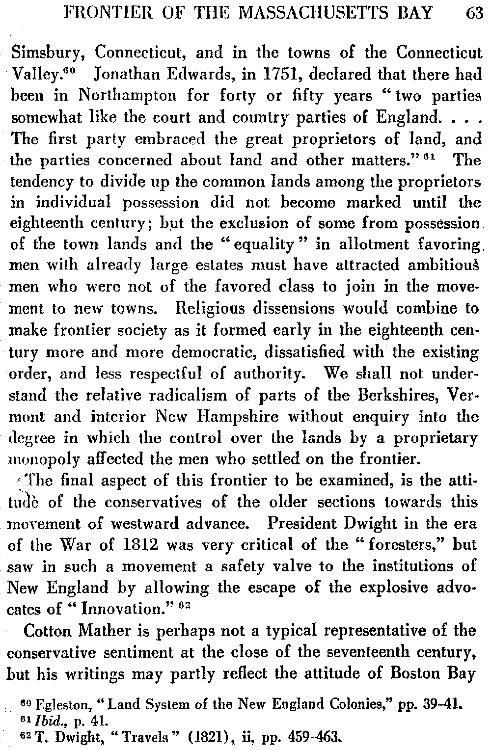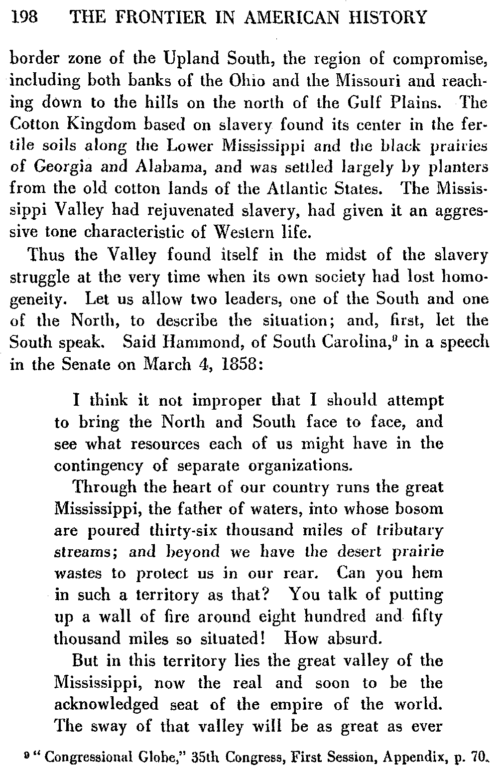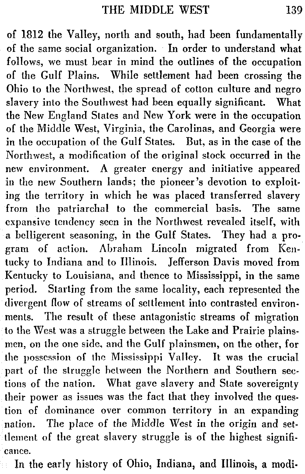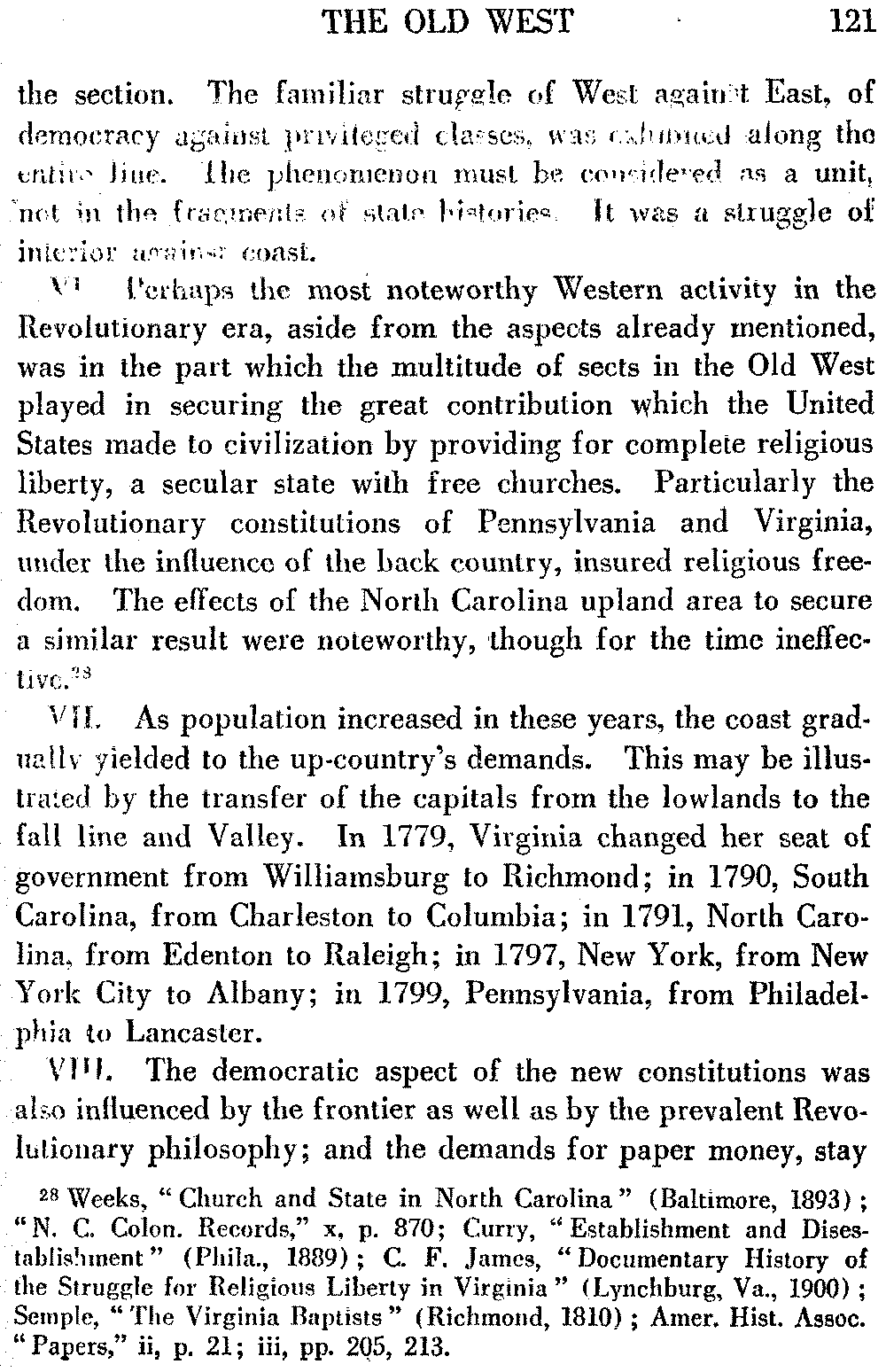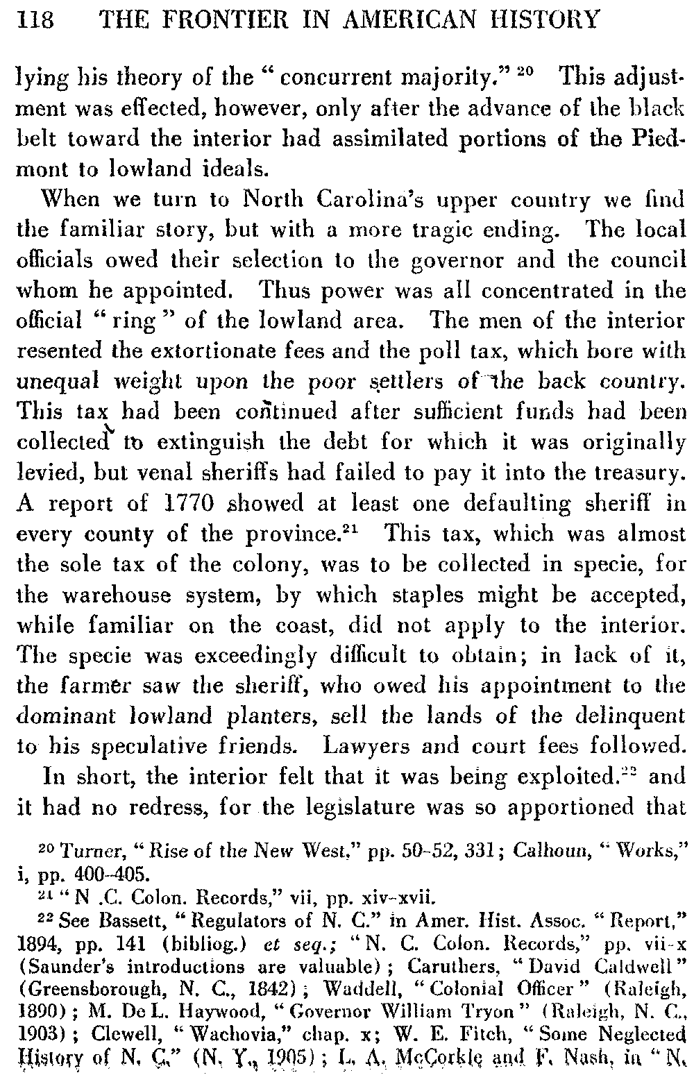 Each of these areas has had an influence in our economic and political history; the evolution of each into a higher stage has worked political transformations. But what constitutional historian has made any adequate attempt to interpret political facts by the light of these social areas and changes?[12:1]