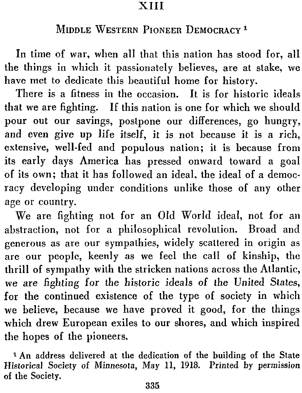| XIII | Middle Western Pioneer Democracy | 335 |