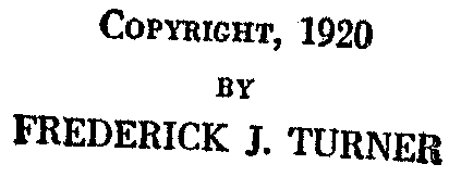 In republishing these essays in collected form, it has seemed best to issue them as they were originally printed, with the exception of a few slight corrections of slips in the text and with the omission of occasional duplication of language in the different essays. A considerable part of whatever value they may possess arises from the fact that they are commentaries in different periods on the central theme of the influence of the frontier in American history. Consequently they may have some historical significance as contemporaneous attempts of a student of American history, at successive transitions in our development during the past quarter century to interpret the relations of the present to the past. Grateful acknowledgment is made to the various societies and periodicals which have given permission to reprint the essays.