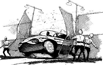 After that they had no trouble. Kerk drove at top speed away from the Casino, the torn sleeve of his pajamas whipping in the breeze, giving glimpses of the big gun back in the holster.