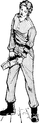 The man who had thrown out the dice reached quickly for his hip pocket. Jason was the only one who saw what happened next. He was watching that hand closely, his own fingers near his gun butt. As the man dived into his pocket a hand reached out of the crowd behind him. From its square-cut size it could have belonged to only one person. The thick thumb and index finger clamped swiftly around the house man's wrist, then they were gone. The man screamed shrilly and held up his arm, his hand dangling limp as a glove from the broken wrist bones.