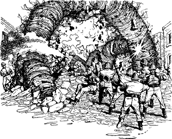 When they rounded the corner there was a car bearing down on them. Before Jason could get his gun clear of the holster Kerk was in front of him. His arm came up and his big ugly gun burst through the cloth of his sleeve and jumped into his hand. A single shot killed the driver and the car swerved and crashed. The other two men in the car died coming out of the door, their guns dropping from their hands.