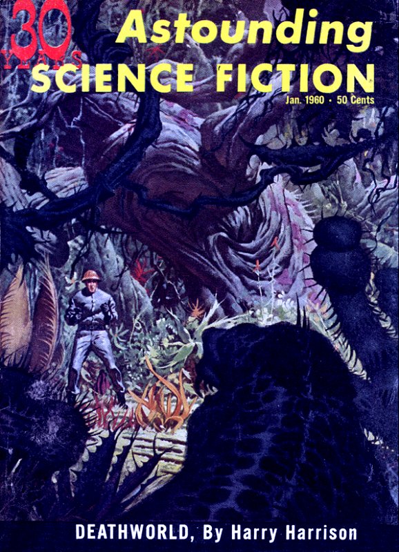 The Project Gutenberg EBook of Deathworld, by Harry Harrison This eBook is for the use of anyone anywhere at no cost and with almost no restrictions whatsoever. You may copy it, give it away or re-use it under the terms of the Project Gutenberg License included with this eBook or online at www.gutenberg.net Title: Deathworld Author: Harry Harrison Illustrator: H. R. van Dongen Release Date: March 17, 2009 [EBook #28346] Language: English Character set encoding: ISO-8859-1 *** START OF THIS PROJECT GUTENBERG EBOOK DEATHWORLD *** Produced by Greg Weeks, Bruce Albrecht, Stephen Blundell and the Online Distributed Proofreading Team at http://www.pgdp.net