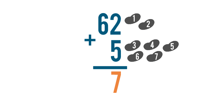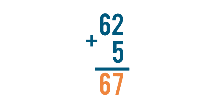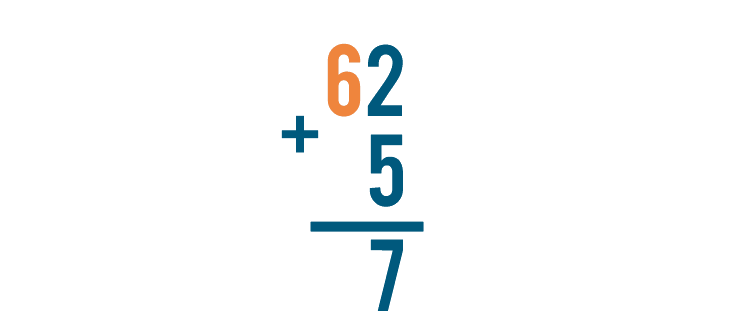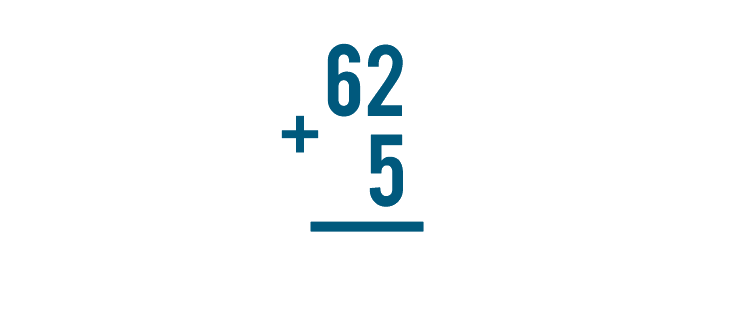 Let's look at one more problem, just for practice. This time, we'll solve 62 + 5.
