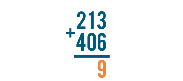As always, we start with the digits on the far right. Here, that means we'll solve 3 + 6.