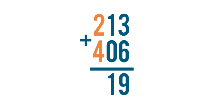 To finish, add this column. Remember to include the 1 we just carried.