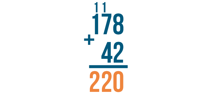 We're done. Our answer is 220. 178 + 42 = 220.