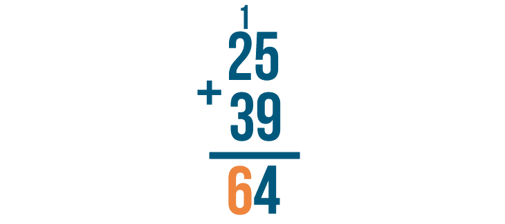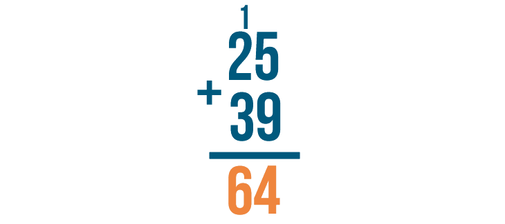 We're done. 25 + 39 = 64.
