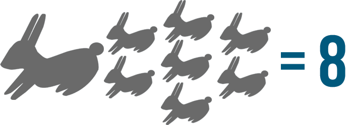In math, the equals sign shows that two numbers or expressions mean the same thing, even though they might look different. Remember our rabbits? Because there were 8 rabbits total, we wrote 8 to the right of the equals sign.