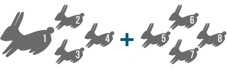 The plus sign (+) means two things are being added together. This is why we put it between the rabbits—we had 4 rabbits and added 4 more.