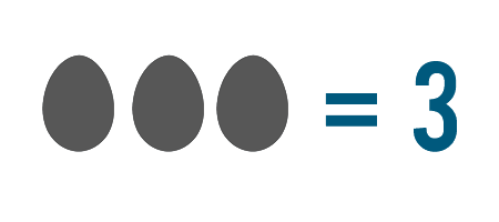 In our eggs example, since 3 eggs were left, we wrote 3 to the right of the equals sign. That shows each side means 3. 3 eggs on the left, and the number 3 on the right. Both sides are equal.