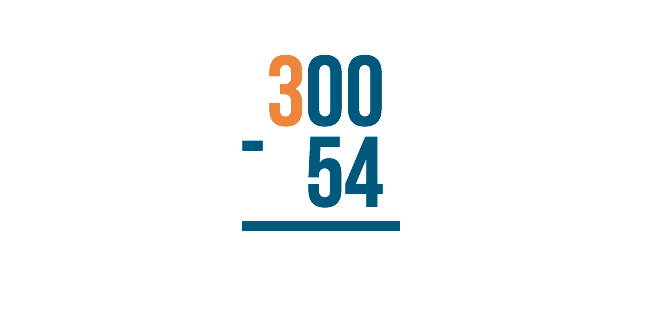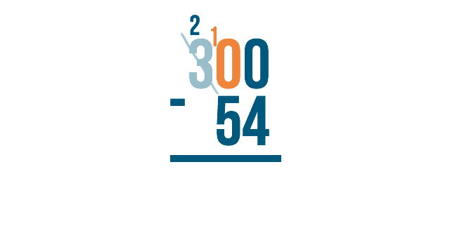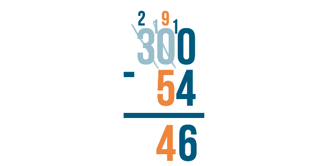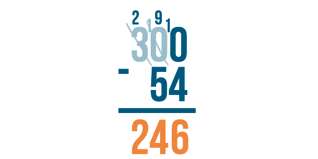 Let's look at the example 300 minus 54. We would begin on the right with 0 minus 4. However, zero is smaller than 4, so we would need to borrow from the next digit to the left.
