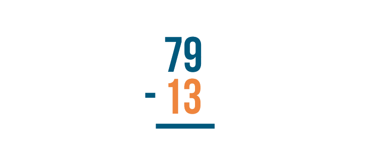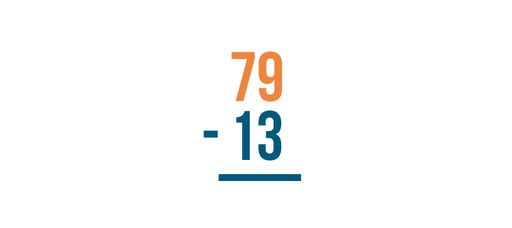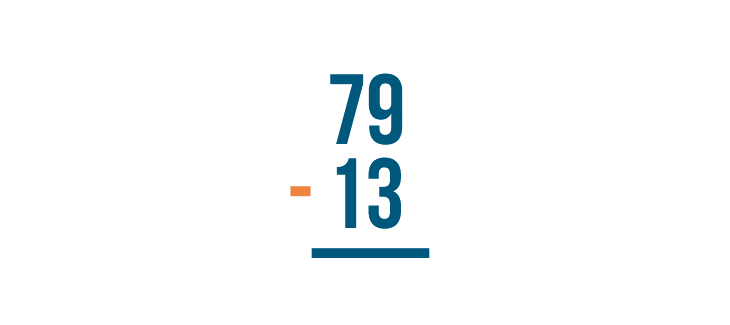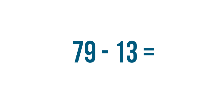 For this reason, when people solve a subtraction problem with large numbers, they set up the problem in a way that makes it easy to solve one step at a time. Let's see how this works with another problem: 79 - 13.
