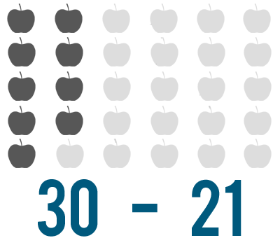 What if you need to solve a subtraction problem that starts with a large number? For instance, let's say instead of making an apple pie, you want to pick apples from an apple tree. The tree has 30 apples and you pick 21. We could write this as 30 - 21.