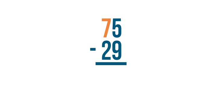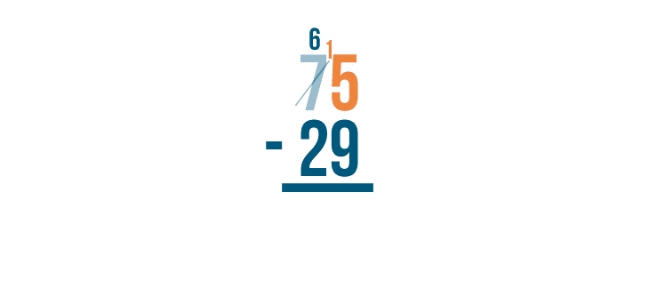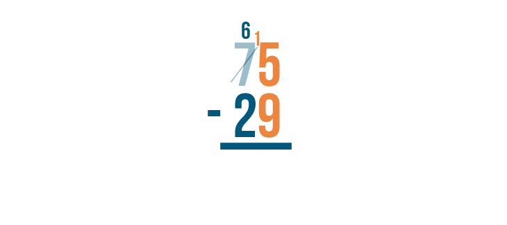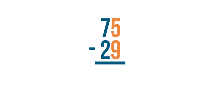 As with all stacked subtraction problems, begin with the digits farthest to the right. Here, they are 5 and 9.