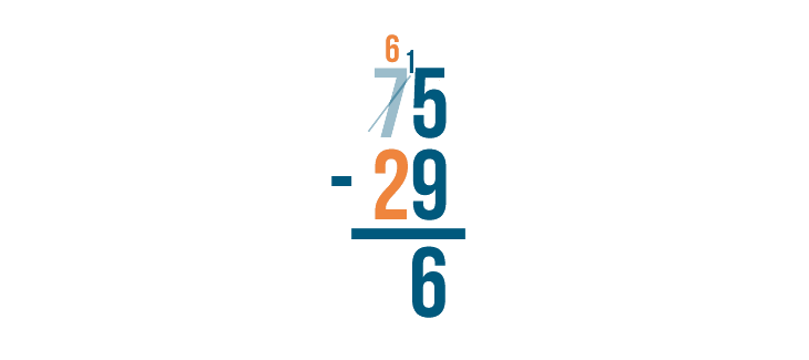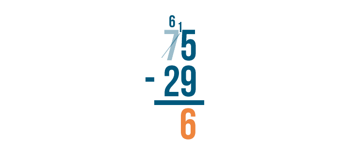 7 - 1 = 6. To help us remember that we subtracted 1, we'll cross out the 7 and write 6 above it.