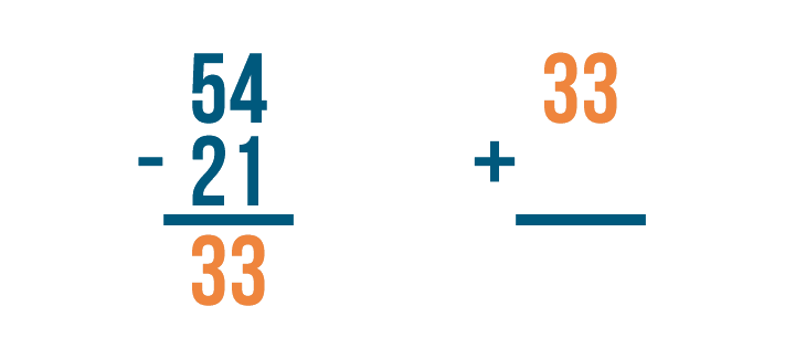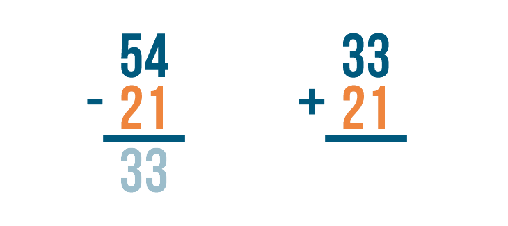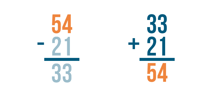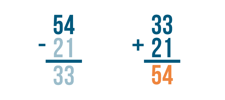 Let's try using addition to check the answer to another subtraction problem: 54 - 21 = 33.