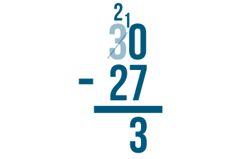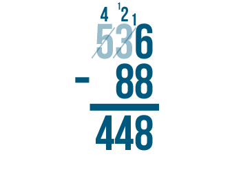 As you borrow, always cross out the digit you borrow from and write the new value above it. Remember to always place the 1 next to the smaller digit.