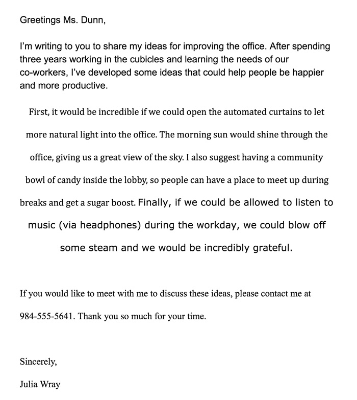 Properly formatting a business document can make a big difference in the quality of your work. Take time to format and organize your message, and it will be professional, clear, and effective.