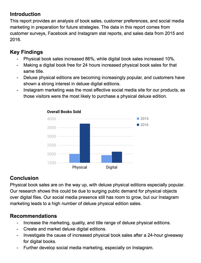 If you use graphics like images and charts in your document, make sure they’re clear and legible. While you should use as many graphics as necessary, don’t add them solely for decoration. Otherwise, the extra visuals can take over the document and bury your message.