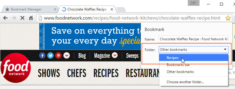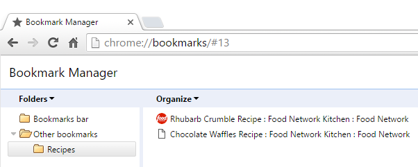- Click the folder where you want to add a new folder. In this example, we'll create a folder to help organize some recipes in the Other bookmarks folder.