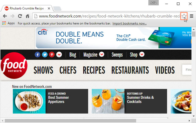 - Click the star in the Omnibox to save the current page as a bookmark.