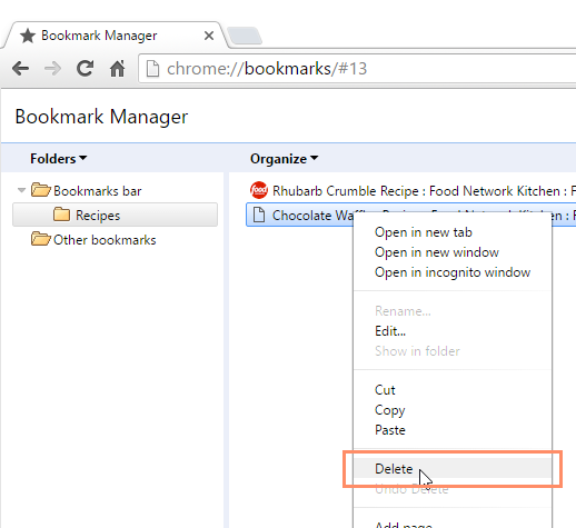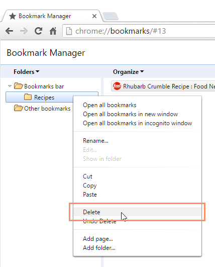 If you no longer use certain bookmarks or folders, you can always delete them.