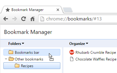 - Moving a folder to the Bookmarks bar folder will place it directly on the Bookmarks bar.