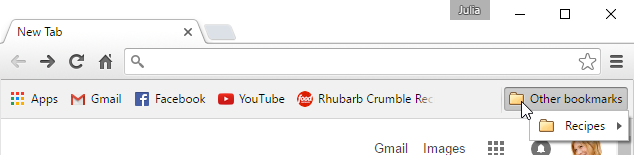 The Other bookmarks folder will also appear on the Bookmarks bar for easy access to all of your bookmarks.