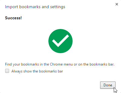 - The imported bookmarks will appear in a folder on the Bookmarks bar. You can use the Bookmark Manager to reorganize these bookmarks if desired.