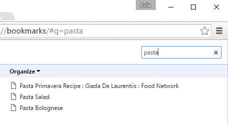 If you're looking for a specific bookmark but can't remember where it's saved, you can search for it.