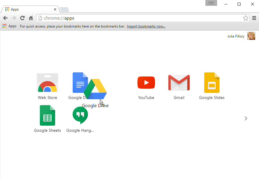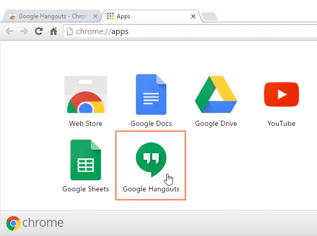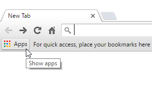 To access the Apps page, click the Apps button on the bookmarks bar. The Apps button also appears on the New Tab page.