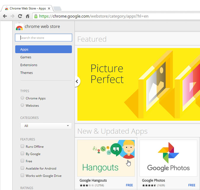 The Chrome Web Store will appear. Click an app to learn more about it.