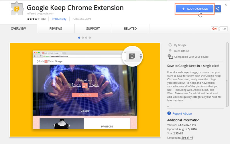 The extension page will appear with information on how the extension works, user reviews, screenshots, and more. If you want to use the extension, click Add to Chrome.