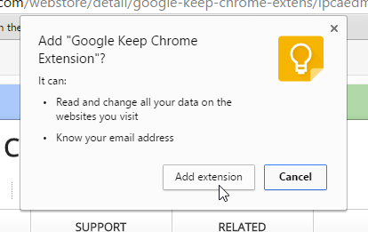 To use an extension, click the icon while viewing any page. In this example, the extension allows us to save websites for easy access later.