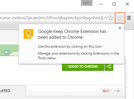 The extension will be installed. The extension's icon will appear in the top navigation bar. Note that some extensions work in the background and will not appear in the navigation bar.