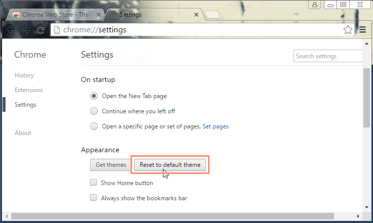 If you find that you don't like a theme after you've installed it or you'd like to return to the default Chrome theme, you can remove the theme.