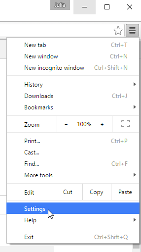 - Click the Chrome menu in the top-right corner of the browser, then select Settings from the drop-down menu.