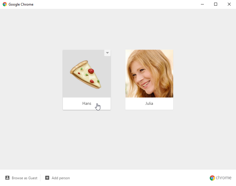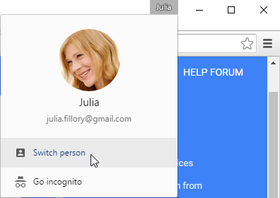 - A new window will open for that user, with the profile icon in the top-right corner now displaying his or her name.