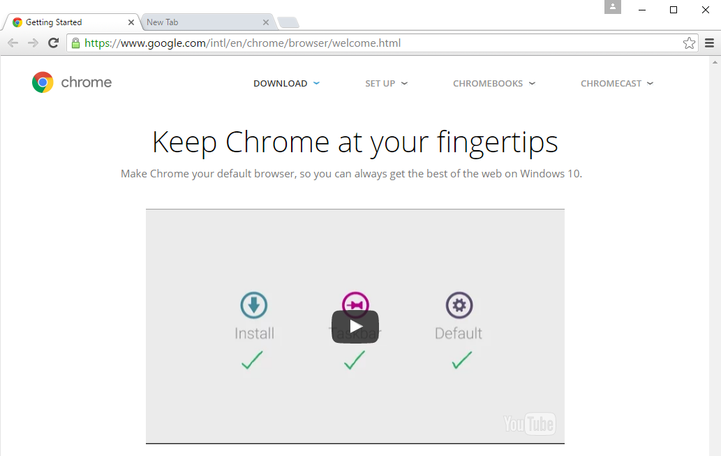 Unlike Internet Explorer or Safari, Chrome does not come pre-installed with your operating system. To use Chrome, you must first download and install it to your computer. The process is simple and should take no more than a few minutes.