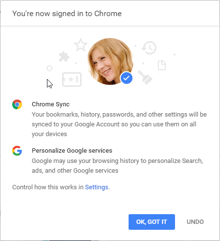 - You are now signed in to Chrome. Click OK to close the dialog box.