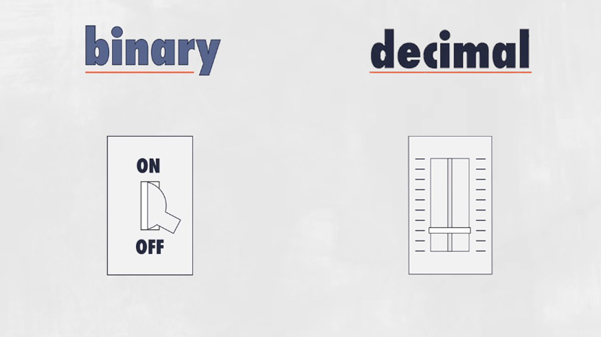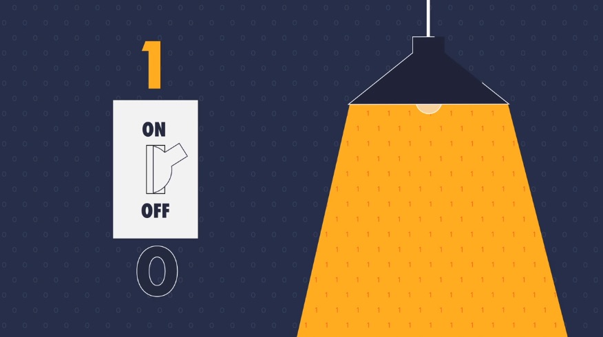 But how exactly do these ones and zeroes come together and allow a computer to function? Let's think of binary like a light switch. Imagine that a one represents the light switch being on, and a zero represents it being off. With binary, the light is either on or off, with no other possible states.