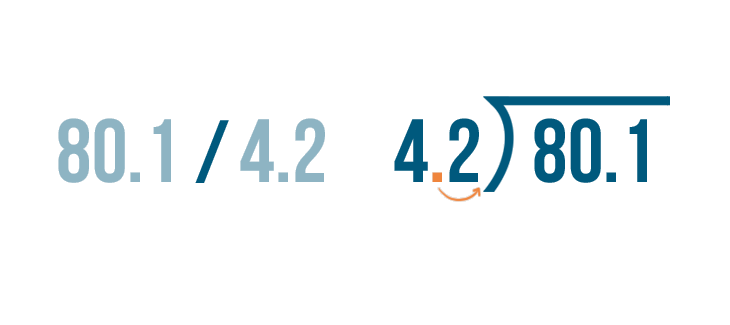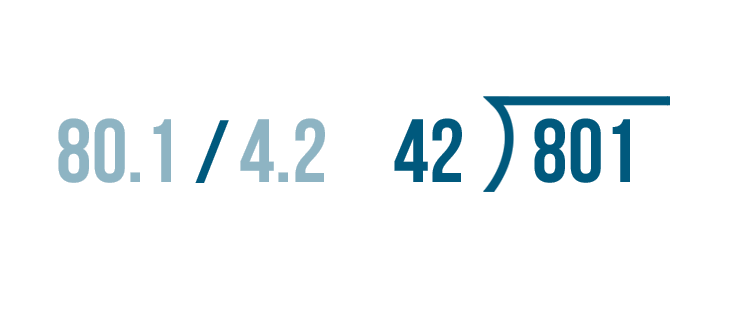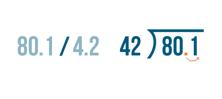 To make division easier, we'll change the the number we're dividing by into a whole number. This means we'll change 4.2.