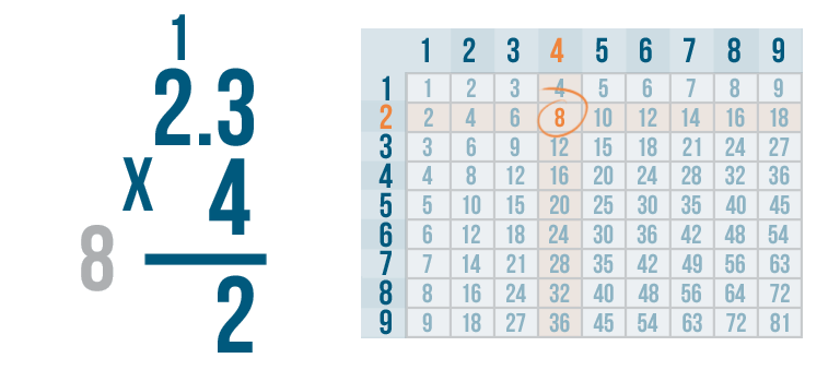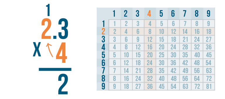 Now it's time for the next step. We'll multiply 4 x 2.